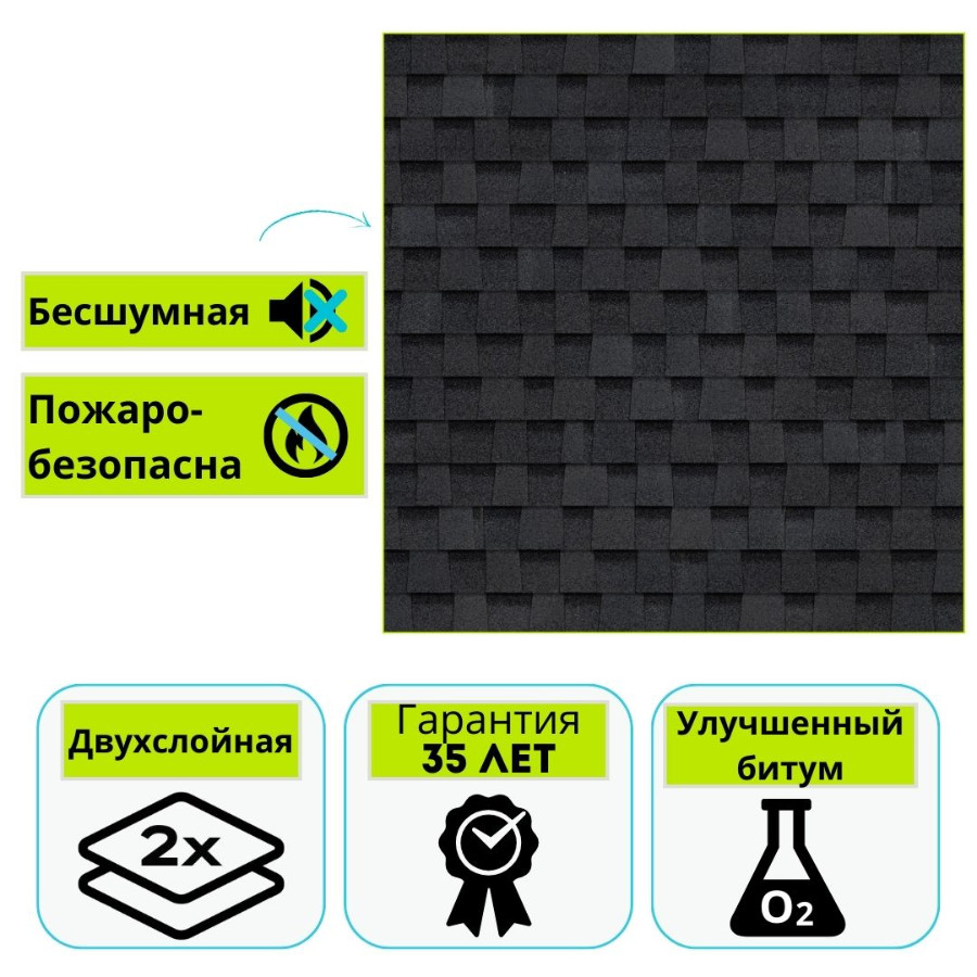 Гибкая черепица эффективно гасит звук дождя и града. Даже при сильном ливне в доме сохраняется акустический комфорт, что особенно важно для мансардных этажей. Материал работает как дополнительный шумопоглощающий слой.